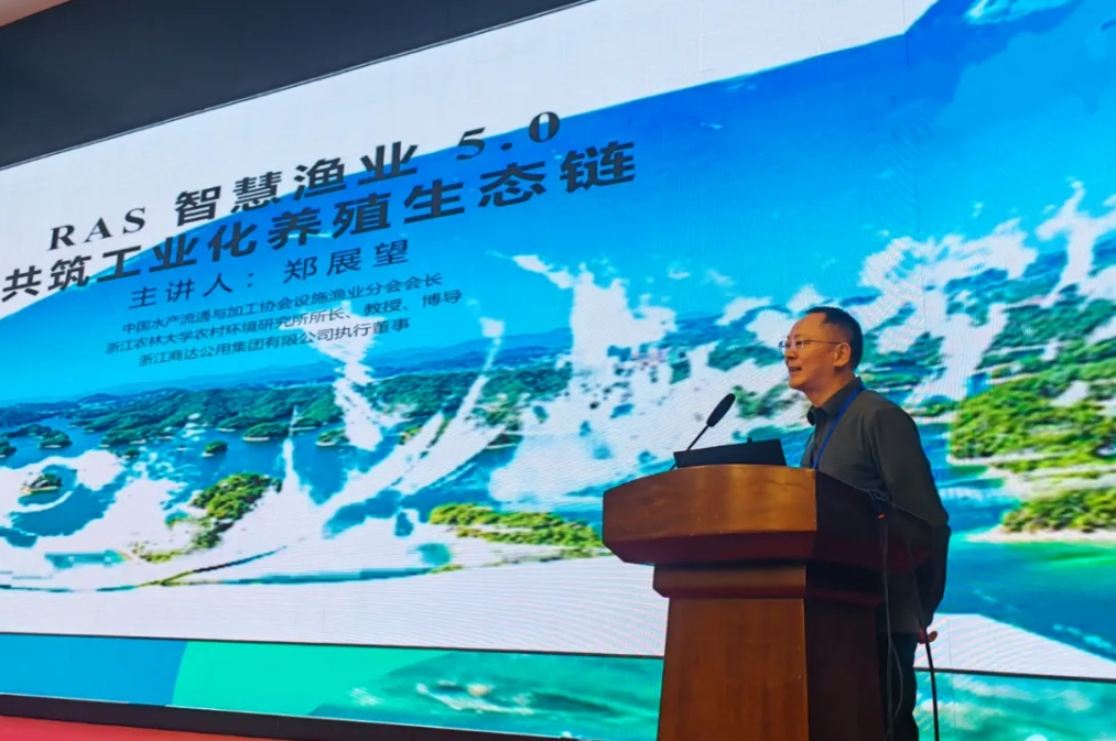 中國水產(chǎn)流通與加工協(xié)會設(shè)施漁業(yè)分會會長、浙江商達公用集團有限公司執(zhí)行董事鄭展望教授受邀出席,作為主講嘉賓分享了《RAS智慧漁業(yè)5.0:共筑工業(yè)化養(yǎng)殖生態(tài)鏈》的創(chuàng)新實踐成果,為全球水產(chǎn)養(yǎng)殖轉(zhuǎn)型升級提供商達公用方案。