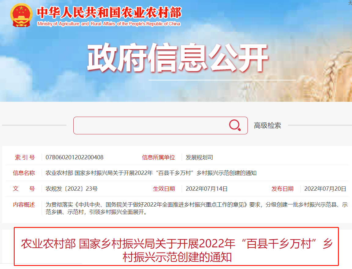 全面推進(jìn)鄉(xiāng)村振興是黨中央、國務(wù)院作出的重大部署,開展“百縣千鄉(xiāng)萬村”鄉(xiāng)村振興示范創(chuàng)建是推進(jìn)鄉(xiāng)村振興的重要舉措。為貫徹落實《中共中央、國務(wù)院關(guān)于做好2022年全面推進(jìn)鄉(xiāng)村振興重點工作的意見》要求,分級創(chuàng)建一批鄉(xiāng)村振興示范縣、示范鄉(xiāng)鎮(zhèn)、示范村,引領(lǐng)鄉(xiāng)村振興全面展開,現(xiàn)就開展2022年“百縣千鄉(xiāng)萬村”鄉(xiāng)村振興示范創(chuàng)建通知如下。