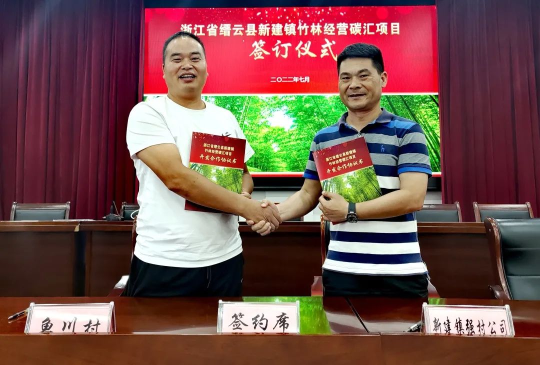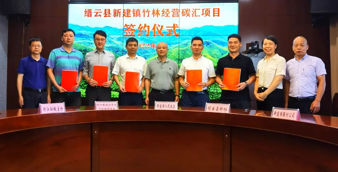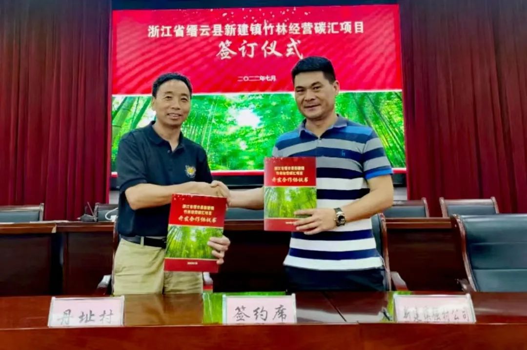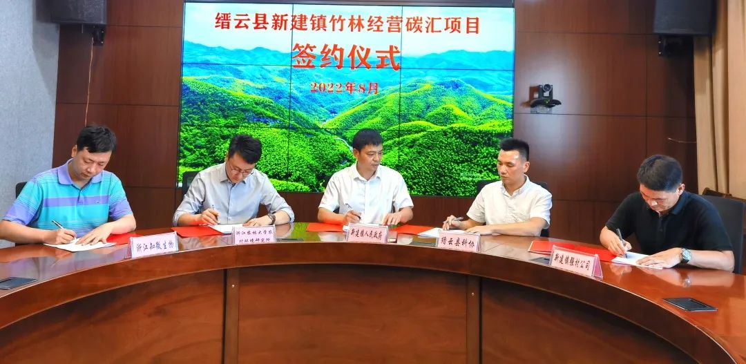 8月5日,縉云縣新建鎮(zhèn)首期4萬畝竹林經(jīng)營碳匯項目開發(fā)合作協(xié)議成功簽署??N云縣科學(xué)技術(shù)協(xié)會、新建鎮(zhèn)人民政府,新建鎮(zhèn)強村公司、浙江農(nóng)林大學(xué)農(nóng)村環(huán)境研究所、浙江知溦生物科技有限公司單位參加簽約儀式,協(xié)議的簽署標(biāo)志著縉云縣首個竹林碳匯項目成功落地新建。