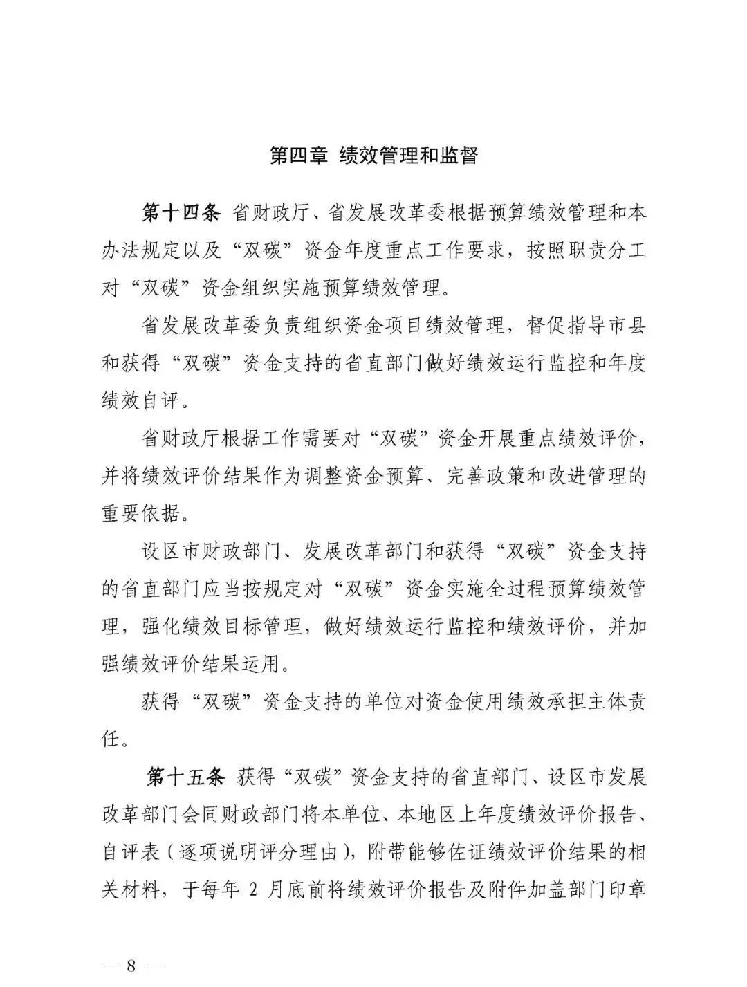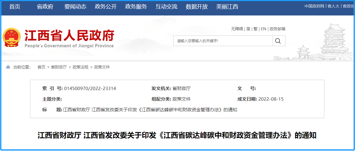 日前,江西省財(cái)政廳、省發(fā)改委印發(fā)《江西省碳達(dá)峰碳中和財(cái)政資金管理辦法》,對江西省“雙碳”資金的支持范圍和方式、資金申請和使用管理、績效管理監(jiān)督等作了明確規(guī)定,通過試點(diǎn)示范、評(píng)價(jià)激勵(lì)等方式,調(diào)動(dòng)各地開展碳達(dá)峰碳中和工作的積極性,進(jìn)一步促進(jìn)經(jīng)濟(jì)社會(huì)綠色低碳發(fā)展。