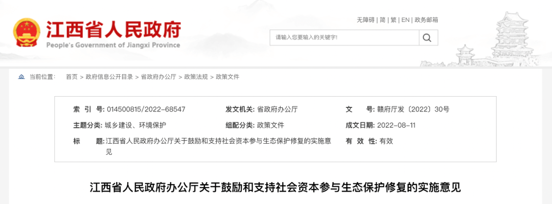 為貫徹落實(shí)《國務(wù)院辦公廳關(guān)于鼓勵(lì)和支持社會(huì)資本參與生態(tài)保護(hù)修復(fù)的意見》(國辦發(fā)〔2021〕40號(hào))精神,促進(jìn)社會(huì)資本參與全省生態(tài)保護(hù)修復(fù)工作,全面服務(wù)美麗中國“江西樣板”建設(shè),經(jīng)省政府同意,結(jié)合我省實(shí)際,現(xiàn)提出以下實(shí)施意見。以習(xí)近平生態(tài)文明思想為指導(dǎo),全面貫徹黨的十九大和十九屆歷次全會(huì)以及省第十五次黨代會(huì)精神,踐行“綠水青山就是金山銀山”理念,堅(jiān)持“生態(tài)優(yōu)先、綠色發(fā)展”戰(zhàn)略定位,重點(diǎn)圍繞全省國土空間生態(tài)保護(hù)修復(fù)總體布局,以解決生態(tài)系統(tǒng)問題為導(dǎo)向,以市場(chǎng)化、多元化投融資為支撐,增強(qiáng)生態(tài)產(chǎn)品供給能力,激活釋放政策紅利,健全完善生態(tài)保護(hù)修復(fù)投入機(jī)制,實(shí)現(xiàn)生態(tài)效益、社會(huì)效益和經(jīng)濟(jì)效益相統(tǒng)一,為推動(dòng)全省高質(zhì)量發(fā)展、加快建設(shè)美麗中國“江西樣板”奠定堅(jiān)實(shí)的生態(tài)基礎(chǔ)。(一)自然生態(tài)系統(tǒng)保護(hù)修復(fù)。針對(duì)受損、退化、功能下降的森林、草地、濕地、河流、湖泊等自然生態(tài)系統(tǒng),開展水土流失防治、崩崗綜合治理、石漠化防治、河道保護(hù)治理、水生態(tài)保護(hù)修復(fù)、濕地生態(tài)保護(hù)修復(fù)、野生動(dòng)植物種群保護(hù)恢復(fù)、生物多樣性保護(hù)、水源涵養(yǎng)、森林質(zhì)量提升、中幼林撫育、退化林(草)地修復(fù)、人工商品林建設(shè)等。全面提升生態(tài)系統(tǒng)碳匯能力,增加碳匯增量,鼓勵(lì)開發(fā)碳匯項(xiàng)目??茖W(xué)評(píng)估界定自然保護(hù)地保護(hù)和建設(shè)范圍,引導(dǎo)當(dāng)?shù)鼐用窈凸娼M織等參與科普宣教、自然體驗(yàn)、紅色教育、科學(xué)實(shí)驗(yàn)等活動(dòng)和特許經(jīng)營項(xiàng)目。(二)農(nóng)田生態(tài)系統(tǒng)保護(hù)修復(fù)。針對(duì)生態(tài)功能減弱、空間布局破碎、生物多樣性減少、開發(fā)利用與生態(tài)保護(hù)矛盾突出的農(nóng)田生態(tài)系統(tǒng),開展全域土地綜合整治,實(shí)施農(nóng)用地整理、建設(shè)用地整理、鄉(xiāng)村生態(tài)保護(hù)修復(fù)、土地復(fù)墾、生物多樣性保護(hù)等,改善農(nóng)田生境和條件。(三)城鎮(zhèn)生態(tài)系統(tǒng)保護(hù)修復(fù)。針對(duì)城鎮(zhèn)生態(tài)系統(tǒng)連通不暢、空間結(jié)構(gòu)不合理、生態(tài)空間不足等問題,實(shí)施生態(tài)廊道、生態(tài)清潔小流域、水系連通工程、生態(tài)基礎(chǔ)設(shè)施和生態(tài)網(wǎng)絡(luò)建設(shè),提升城鎮(zhèn)生態(tài)系統(tǒng)質(zhì)量和穩(wěn)定性。