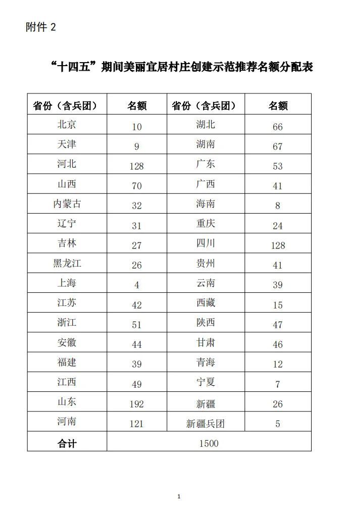 2.“十四五”期間美麗宜居村莊創(chuàng)建示范推薦名額分配表