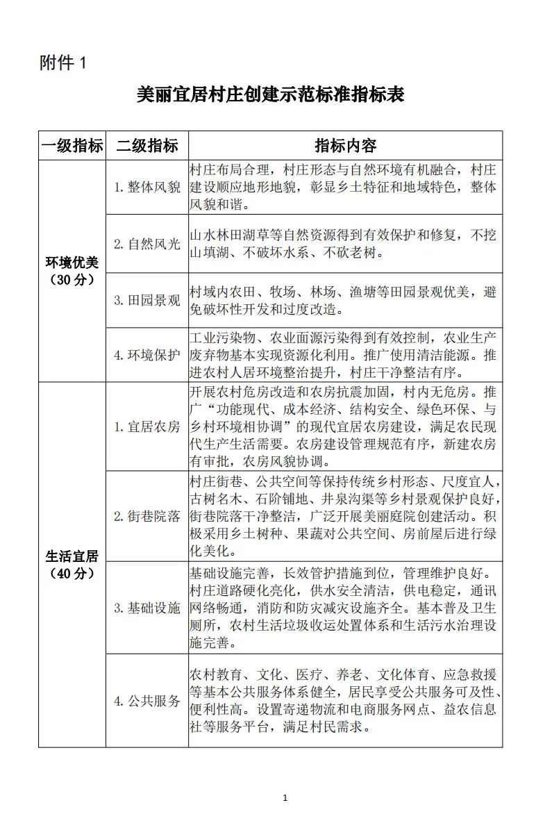 附件:1.美麗宜居村莊創(chuàng)建示范標(biāo)準(zhǔn)指標(biāo)表