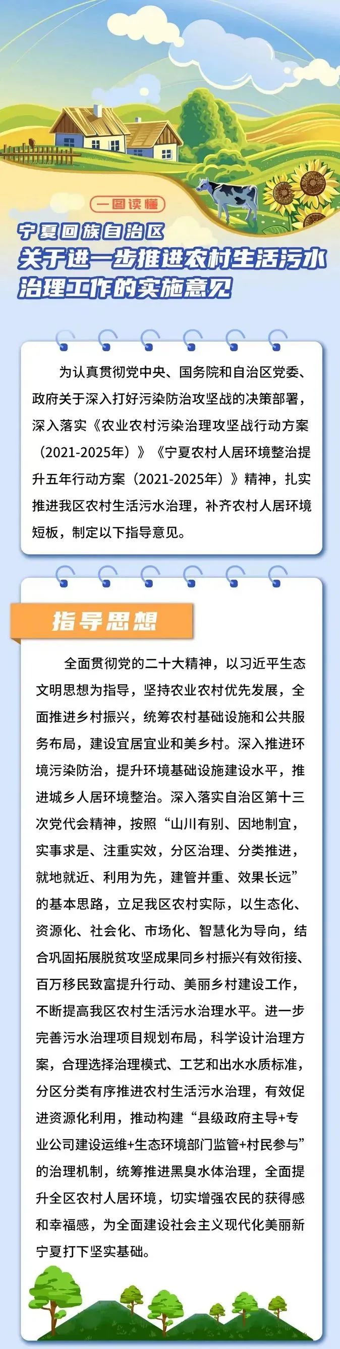 寧夏近日出臺《關于進一步推進農(nóng)村生活污水治理工作的實施意見》。《意見》提出,2022年,實現(xiàn)全區(qū)農(nóng)村生活污水治理率達到30%。到2025年,全區(qū)農(nóng)村生活污水治理率達到40%。圖解如下: