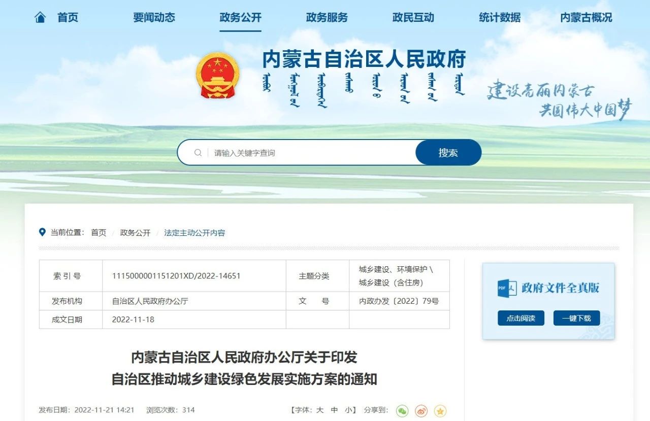 近日,內(nèi)蒙古自治區(qū)人民政府辦公廳印發(fā)了《內(nèi)蒙古自治區(qū)推動城鄉(xiāng)建設(shè)綠色發(fā)展實施方案》(以下簡稱《方案》),提出到2025年,自治區(qū)城鄉(xiāng)建設(shè)綠色發(fā)展取得重大進(jìn)展,城市整體性、系統(tǒng)性、生長性增強(qiáng),城鄉(xiāng)生態(tài)環(huán)境質(zhì)量整體改善,建設(shè)方式不斷優(yōu)化,基礎(chǔ)設(shè)施和建筑綠色品質(zhì)穩(wěn)步提升,綜合治理能力顯著提高,綠色生活方式普遍推廣。
