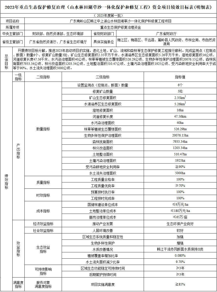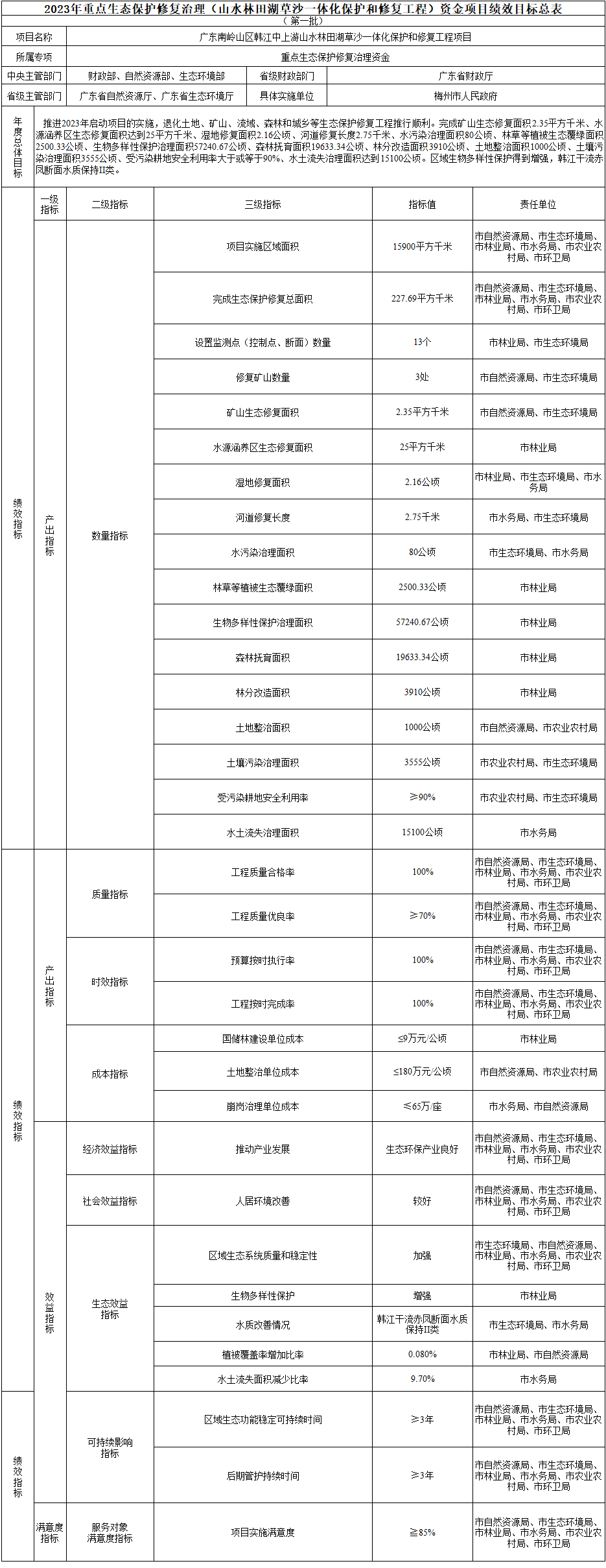 2.2023年重點生態(tài)保護修復治理(山水林田湖草沙一體化保護和修復工程)資金項目績效目標總表(第一批)