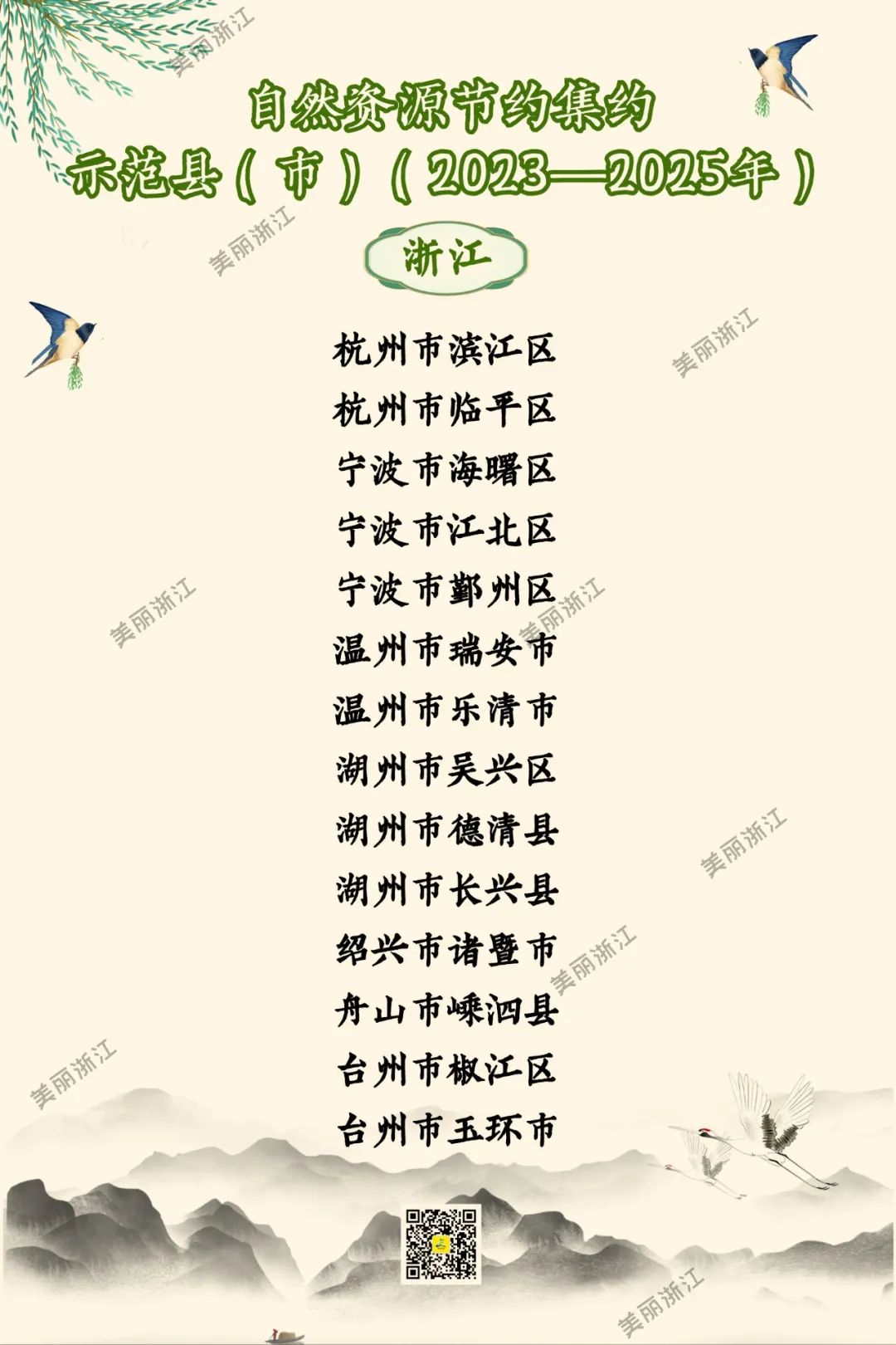 近日,自然資源部印發(fā)通知,認定北京市石景山區(qū)等258個縣(市)為首批自然資源節(jié)約集約示范縣(市),其中,浙江14地入選。創(chuàng)建示范期為2023年至2025年。