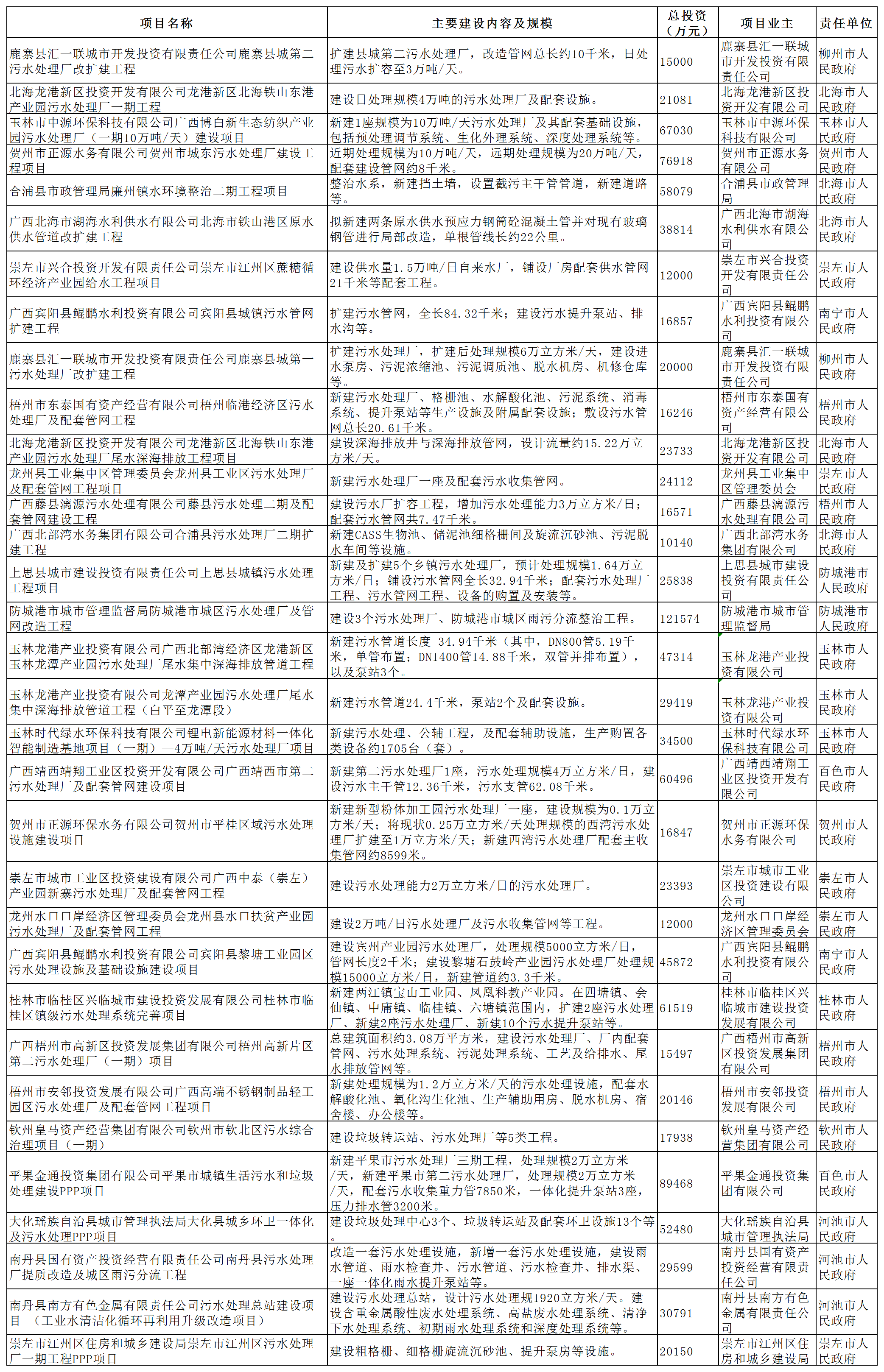 2月14日,廣西壯族自治區(qū)重大項(xiàng)目建設(shè)推進(jìn)領(lǐng)導(dǎo)小組辦公室印發(fā)《2023年自治區(qū)層面統(tǒng)籌推進(jìn)重大項(xiàng)目清單》。2023年重大項(xiàng)目包括新開(kāi)工、續(xù)建、竣工投產(chǎn)和預(yù)備四類(lèi),共2528項(xiàng),總投資46486.42億元,年度計(jì)劃投資4261.67億元。其中包括水環(huán)境綜合整治、城鎮(zhèn)污水管網(wǎng)擴(kuò)建工程、污水處理廠項(xiàng)目、供水等30余個(gè)項(xiàng)目。2023年自治區(qū)層面統(tǒng)籌推進(jìn)重大項(xiàng)目實(shí)施方案2023年是全面貫徹落實(shí)黨的二十大精神開(kāi)局之年,也是貫徹落實(shí)自治區(qū)第十二次黨代會(huì)精神的關(guān)鍵一年,做好自治區(qū)層面統(tǒng)籌推進(jìn)重大項(xiàng)目(以下簡(jiǎn)稱(chēng)重大項(xiàng)目)建設(shè)工作意義重大。為充分發(fā)揮重大項(xiàng)目在調(diào)結(jié)構(gòu)、穩(wěn)增長(zhǎng)、促轉(zhuǎn)型等方面的引領(lǐng)帶動(dòng)作用,努力擴(kuò)大有效投資,促進(jìn)全區(qū)經(jīng)濟(jì)平穩(wěn)健康發(fā)展,特制定本方案。一、主要目標(biāo)以習(xí)近平新時(shí)代中國(guó)特色社會(huì)主義思想為指導(dǎo),深入學(xué)習(xí)貫徹黨的二十大精神和中央經(jīng)濟(jì)工作會(huì)議精神,認(rèn)真學(xué)習(xí)貫徹習(xí)近平總書(shū)記對(duì)廣西“五個(gè)更大”重要要求,深入貫徹落實(shí)習(xí)近平總書(shū)記視察廣西“4·27”重要講話(huà)和對(duì)廣西工作系列重要指示精神,堅(jiān)持穩(wěn)中求進(jìn)工作總基調(diào),立足新發(fā)展階段,完整、準(zhǔn)確、全面貫徹新發(fā)展理念,服務(wù)和融入新發(fā)展格局,以推動(dòng)高質(zhì)量發(fā)展為主題,堅(jiān)持政策為大、項(xiàng)目為王、環(huán)境為本、創(chuàng)新為要,始終保持重大項(xiàng)目“開(kāi)工一批、在建一批、投產(chǎn)一批、儲(chǔ)備一批”的良好態(tài)勢(shì),促進(jìn)全區(qū)經(jīng)濟(jì)社會(huì)持續(xù)健康發(fā)展。深入實(shí)施《廣西重大項(xiàng)目建設(shè)三年行動(dòng)計(jì)劃(2021—2023年)》,繼續(xù)推進(jìn)一批重大項(xiàng)目加快建設(shè),力爭(zhēng)全年完成投資5000億元以上,新開(kāi)工項(xiàng)目360個(gè)以上,努力實(shí)現(xiàn)質(zhì)的有效提升和量的合理增長(zhǎng),為全面建設(shè)新時(shí)代壯美廣西開(kāi)好局起好步。二、工作任務(wù)2023年重大項(xiàng)目包括新開(kāi)工、續(xù)建、竣工投產(chǎn)和預(yù)備四類(lèi),共2528項(xiàng),總投資46486.42億元,年度計(jì)劃投資4261.67億元。其中,新開(kāi)工項(xiàng)目303項(xiàng),總投資4750.92億元,年度計(jì)劃投資617.97億元;續(xù)建項(xiàng)目1285項(xiàng),總投資24981.42億元,年度計(jì)劃投資3019.03億元;竣工投產(chǎn)259項(xiàng),總投資4713.88億元,年度計(jì)劃投資624.67億元;預(yù)備項(xiàng)目681項(xiàng),總投資12040.2億元。(一)新開(kāi)工任務(wù)(共303項(xiàng))。區(qū)直中直和跨區(qū)域重大項(xiàng)目25項(xiàng),南寧市24項(xiàng),柳州市29項(xiàng),桂林市27項(xiàng),梧州市29項(xiàng),北海市14項(xiàng),防城港市15項(xiàng),欽州市28項(xiàng),貴港市19項(xiàng),玉林市15項(xiàng),百色市23項(xiàng),賀州市12項(xiàng),河池市16項(xiàng),來(lái)賓市14項(xiàng),崇左市13項(xiàng)。(二)續(xù)建任務(wù)(共1285項(xiàng))。區(qū)直中直和跨區(qū)域重大項(xiàng)目84項(xiàng),南寧市137項(xiàng),柳州市77項(xiàng),桂林市89項(xiàng),梧州市93項(xiàng),北海市74項(xiàng),防城港市56項(xiàng),欽州市86項(xiàng),貴港市95項(xiàng),玉林市98項(xiàng),百色市86項(xiàng),賀州市65項(xiàng),河池市56項(xiàng),來(lái)賓市61項(xiàng),崇左市128項(xiàng)。(三)竣工投產(chǎn)任務(wù)(共259項(xiàng))。區(qū)直中直和跨區(qū)域重大項(xiàng)目48項(xiàng),南寧市20項(xiàng),柳州市34項(xiàng),桂林市23項(xiàng),梧州市14項(xiàng),北海市18項(xiàng),防城港市7項(xiàng),欽州市15項(xiàng),貴港市8項(xiàng),玉林市7項(xiàng),百色市12項(xiàng),賀州市19項(xiàng),河池市8項(xiàng),來(lái)賓市10項(xiàng),崇左市16項(xiàng)。(四)預(yù)備任務(wù)(共681項(xiàng))。區(qū)直中直和跨區(qū)域重大項(xiàng)目20項(xiàng),南寧市50項(xiàng),柳州市32項(xiàng),桂林市49項(xiàng),梧州市48項(xiàng),北海市32項(xiàng),防城港市32項(xiàng),欽州市87項(xiàng),貴港市88項(xiàng),玉林市77項(xiàng),百色市50項(xiàng),賀州市7項(xiàng),河池市59項(xiàng),來(lái)賓市9項(xiàng),崇左市41項(xiàng)。(五)投資任務(wù)。年度計(jì)劃投資4261.67億元,其中,區(qū)直中直和跨區(qū)域重大項(xiàng)目1938.85億元,南寧市217.99億元,柳州市206.00億元,桂林市246.92億元,梧州市191.03億元,北海市205.96億元,防城港市100.87億元,欽州市138.08億元,貴港市152.27億元,玉林市236.67億元,百色市156.83億元,賀州市138.95億元,河池市86.45億元,來(lái)賓市65.80億元,崇左市179.01億元。2023年重大項(xiàng)目清單由自治區(qū)重大項(xiàng)目建設(shè)推進(jìn)領(lǐng)導(dǎo)小組辦公室(以下簡(jiǎn)稱(chēng)自治區(qū)重大辦)印發(fā)實(shí)施并滾動(dòng)管理。三、工作措施(一)加強(qiáng)組織領(lǐng)導(dǎo)。全區(qū)各級(jí)各部門(mén)要進(jìn)一步增強(qiáng)加快推進(jìn)重大項(xiàng)目建設(shè)的責(zé