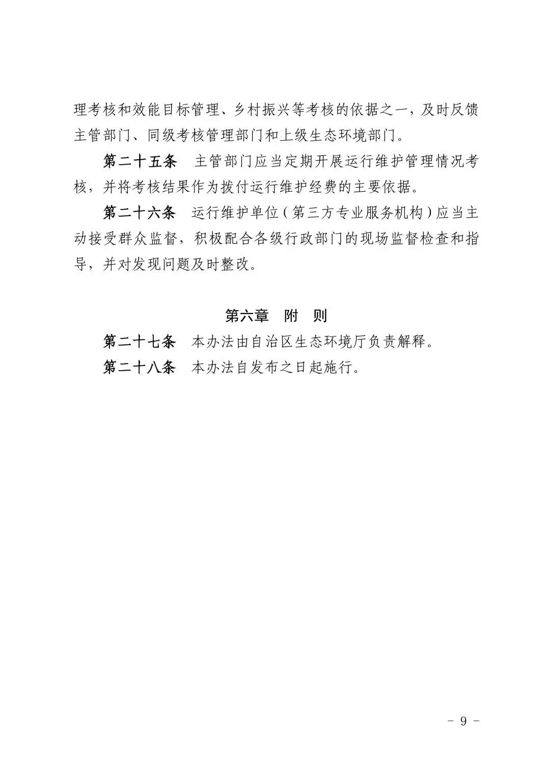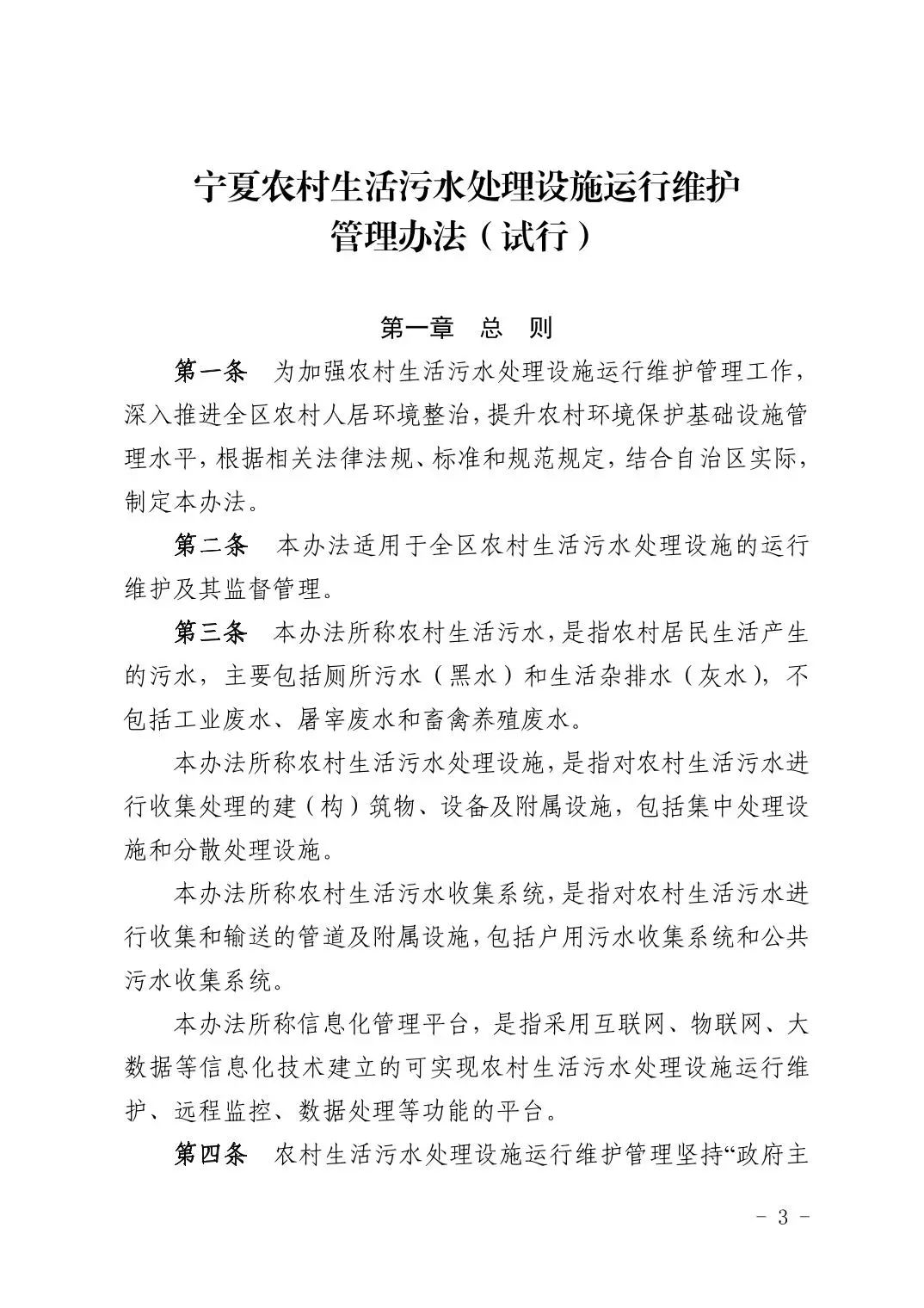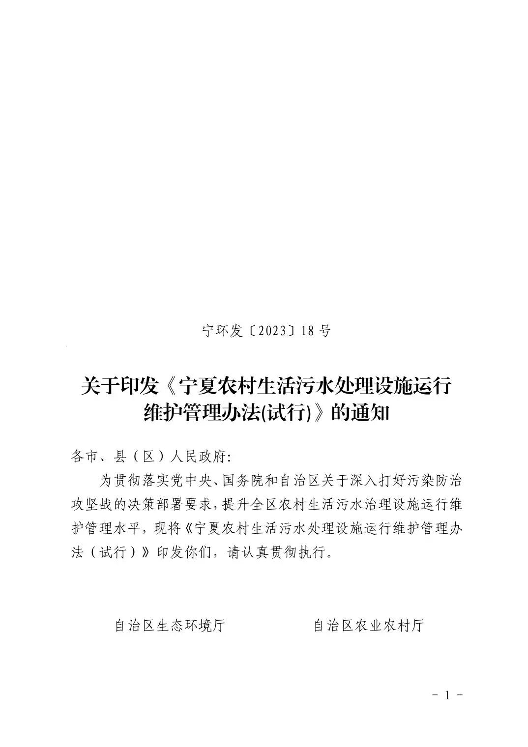 日前,寧夏回族自治區(qū)生態(tài)環(huán)境廳、農(nóng)業(yè)農(nóng)村廳、住房和城鄉(xiāng)建設(shè)廳、發(fā)展和改革委、財政廳聯(lián)合出臺《寧夏農(nóng)村生活污水處理設(shè)施運行維護管理辦法(試行)》,進一步規(guī)范和加強寧夏農(nóng)村生活污水處理設(shè)施運行維護管理工作,全面提升農(nóng)村環(huán)境保護基礎(chǔ)設(shè)施管理水平。
