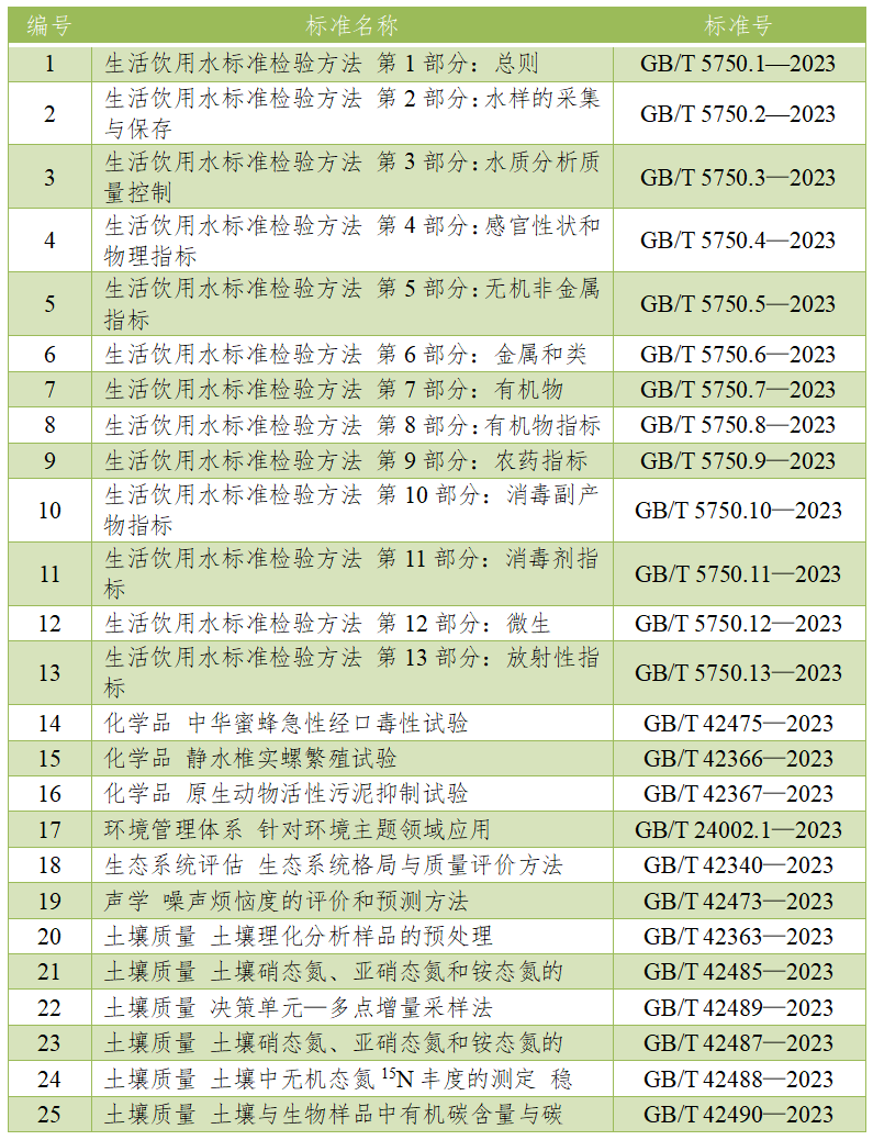 25項生態(tài)環(huán)境領(lǐng)域相關(guān)國家標準發(fā)布,詳見下表:
