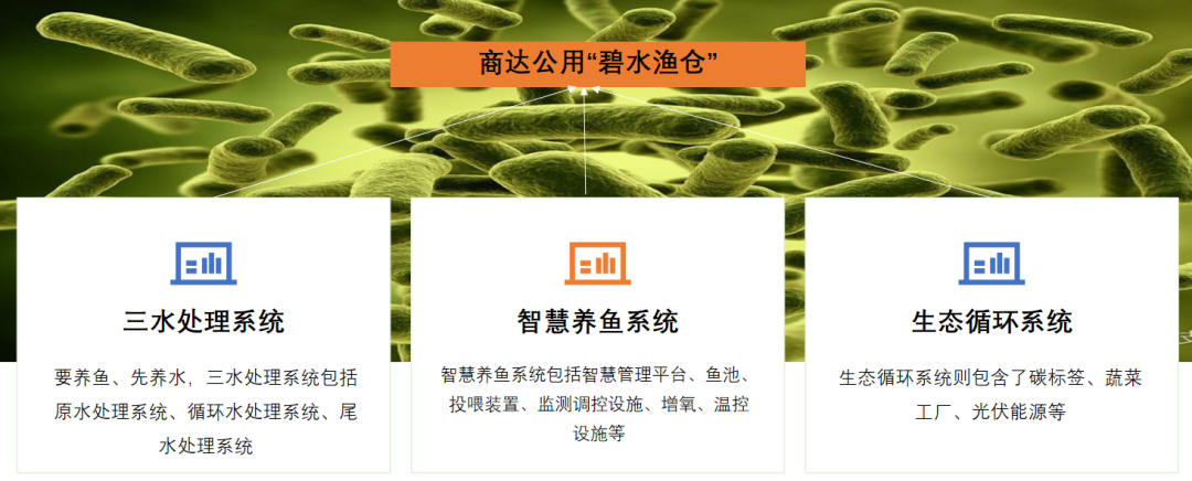 商達公用陸基養(yǎng)魚升級版--“碧水漁倉”系統(tǒng)包括三水(原水、循環(huán)水、尾水)處理系統(tǒng)、智慧養(yǎng)魚系統(tǒng)、生態(tài)循環(huán)系統(tǒng)3個子系統(tǒng),利用EEM菌技術(shù),提供優(yōu)質(zhì)質(zhì)流動活水,健康管理的同時進行尾水循環(huán),全程數(shù)字化、智能化在線管理,具有標準化、高效化、綠色化、智慧化等特點,可實現(xiàn)集約、高產(chǎn)、生態(tài)、安全養(yǎng)殖。