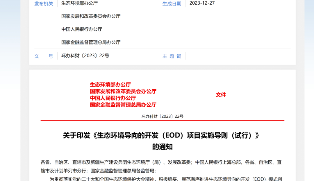 關(guān)于印發(fā)《生態(tài)環(huán)境導(dǎo)向的開發(fā)(EOD)項(xiàng)目實(shí)施導(dǎo)則(試行)》的通知